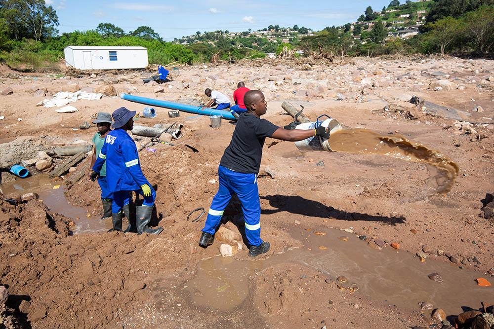 “We have seen water return to the taps of some areas where many are homeless, such as Dassenhoek and KwaNgedezi, only for it to disappear again. Clearly, it will be a long time before consistent flow can be achieved,” says Danish Malik, MSF’s water and sanitation coordinator in Durban.